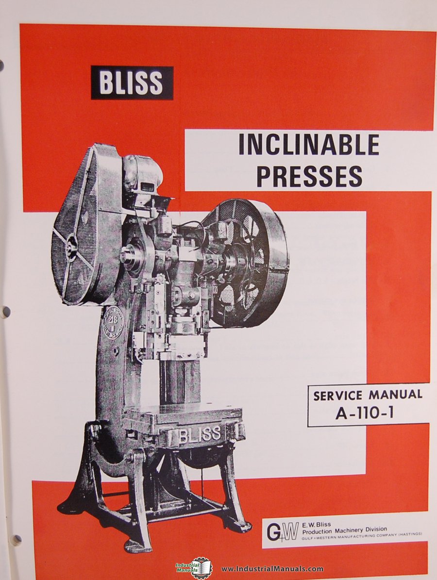 | Título do manual | Bliss 21 1/2-B, A-110-1 Inclinable Press Service Machine Manual |