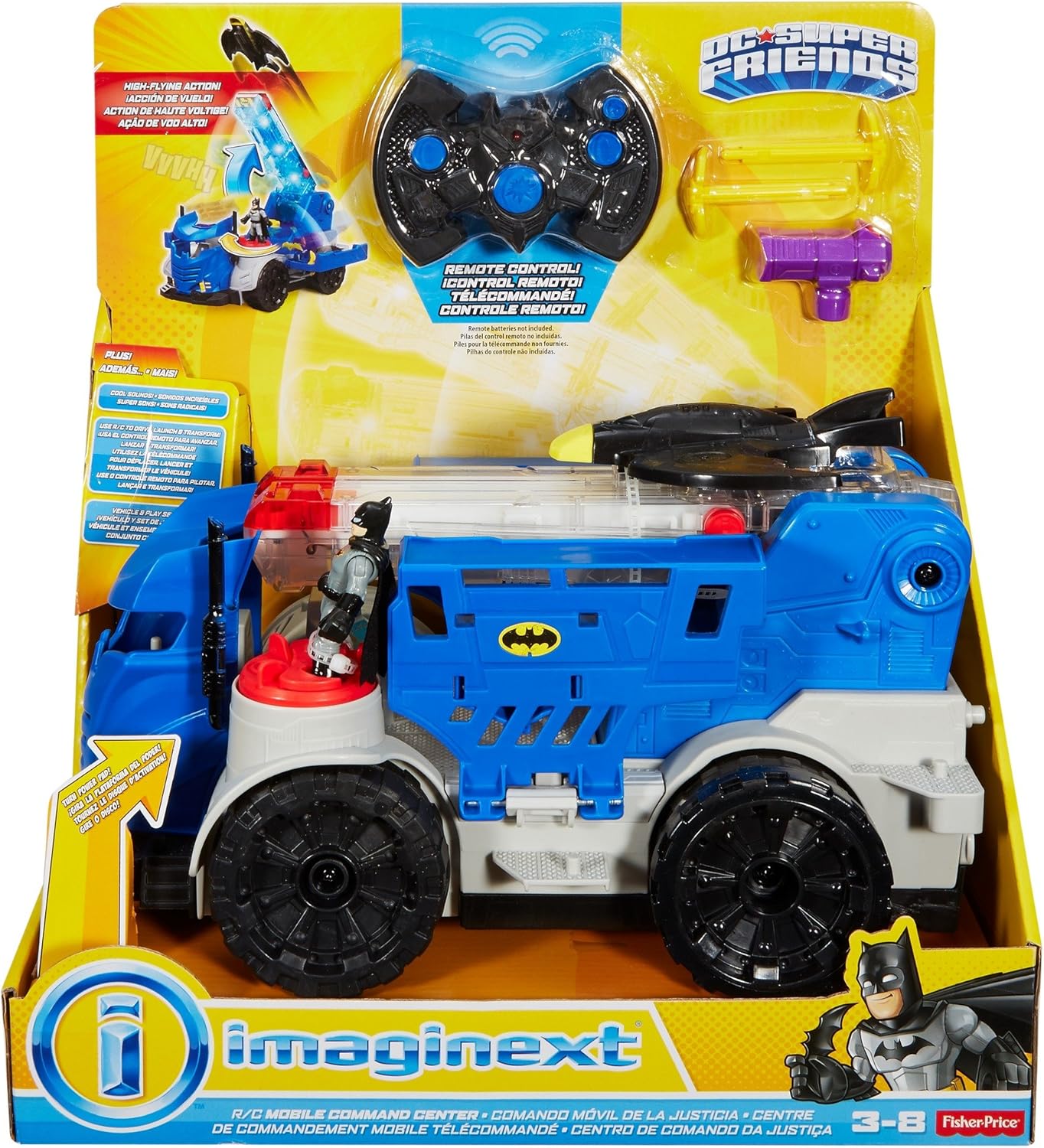 Image: The Imaginext Mobile Command Center in its transformed state, with the remote control positioned in front, highlighting interactive features.