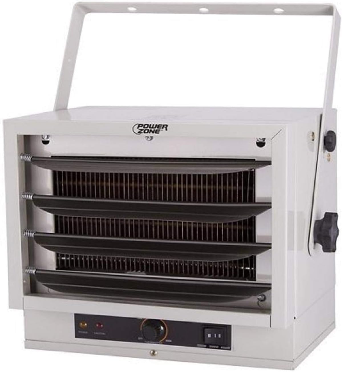 The Power Zone EH-4604A Mount Garage Heater is designed for robust performance in garage environments. Its primary components include the heating elements, a fan for heat distribution, a control panel for operation, and a mounting bracket for installation.