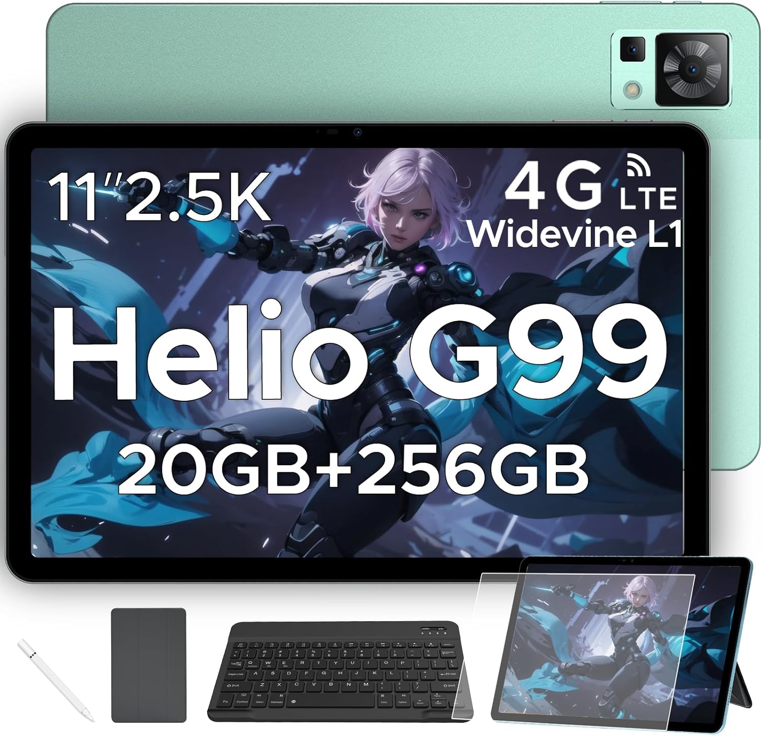 The DOOGEE T35 is an 11-inch tablet featuring a Helio G99 Octa-core processor, Android 14 operating system, and a 2.5K FHD+ display. It comes equipped with 20GB RAM and 256GB internal storage, expandable up to 2TB. Key features include 4G LTE calling, 5G Wi-Fi, an 8580mAh battery with 33W fast charging, and a 20MP camera. Accessories such as a keyboard, stylus, and protective case are included to enhance productivity and user experience.